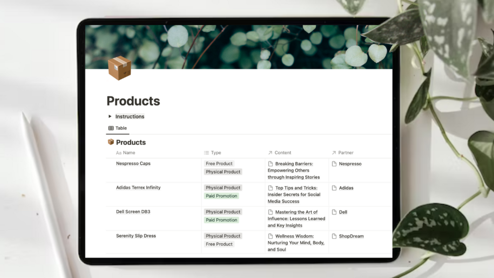 - Stay Organized: Effortlessly manage your content pipeline, partnership engagements, and product collaborations in one centralized hub.